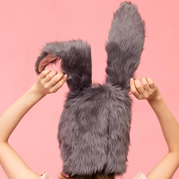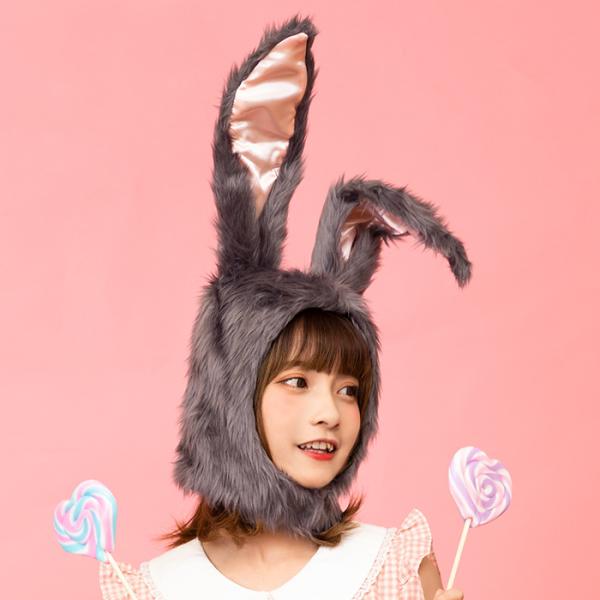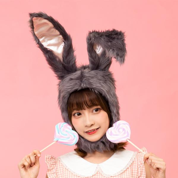 もふもふかぶりもの(グレーうさぎ)