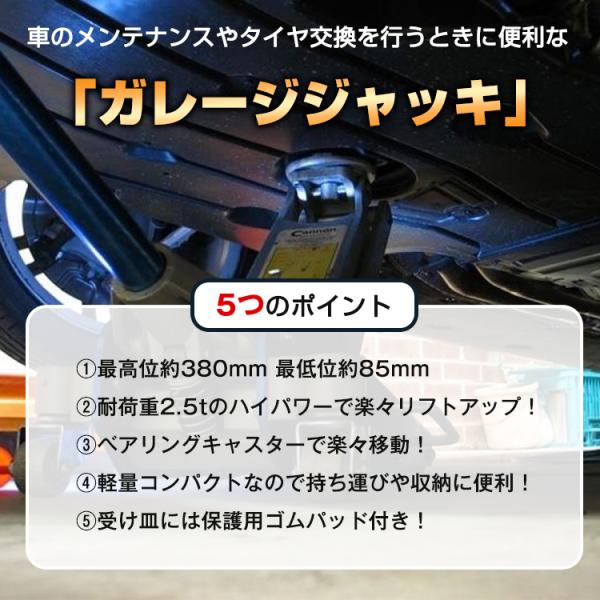 油圧 ジャッキアップ タイヤ交換 ガレージジャッキ フロアジャッキ 2.5t 油圧 低床 ポンプ式 最低位85mm 車用品 メンテナンス DIY ローダウン e122