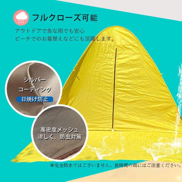 ポップアップテント ビーチテント ワンタッチ テント 2人用 3人用 サンシェード 5秒設置 かわいい おしゃれ 超軽量 防水 通気性抜群 アウトドア キャンプ用品