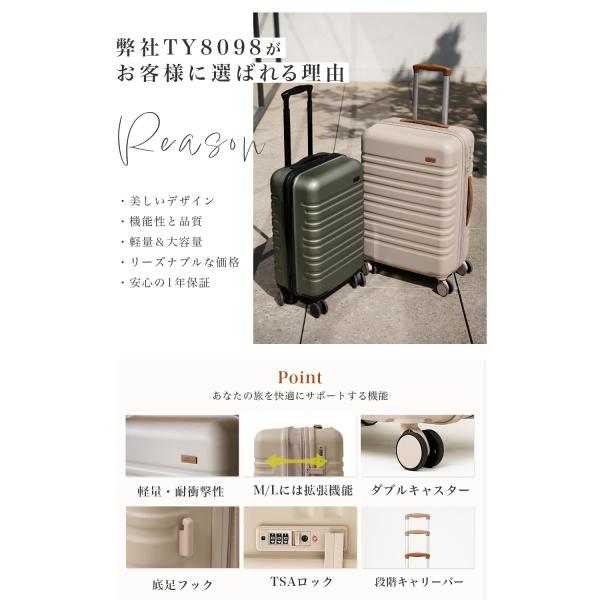 スーツケース m 軽量 キャリーケース Mサイズ 中型 トランクケース 旅行 4泊 5泊 7泊 大容量 TSA 静音 耐久性 おしゃれ かわいい 修学旅行 ty2506-m 爆買