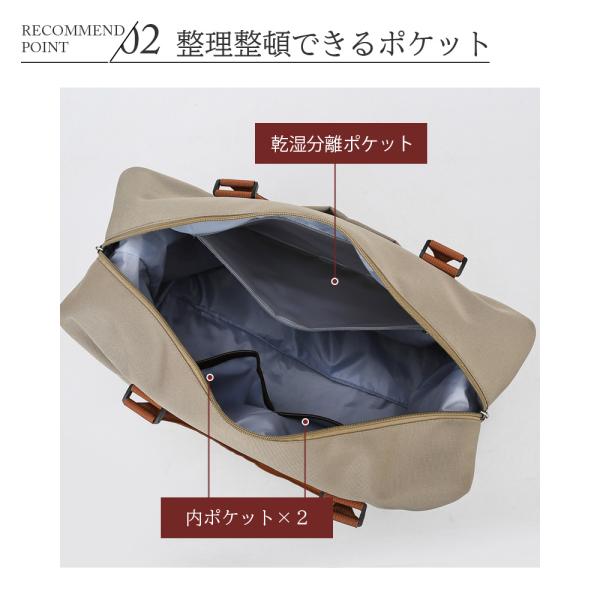 荷物がたくさん入り、旅行・ジム・アウトドアなど様々なシーンで使用できる多機能ボストンバッグ。