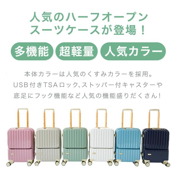スーツケース フロントオープン 機内持ち込み s usb 充電 ストッパー キャリーケース 軽量 TSAロック 2泊3日 小型 キャリーバッグ 前開き TY2308 爆買