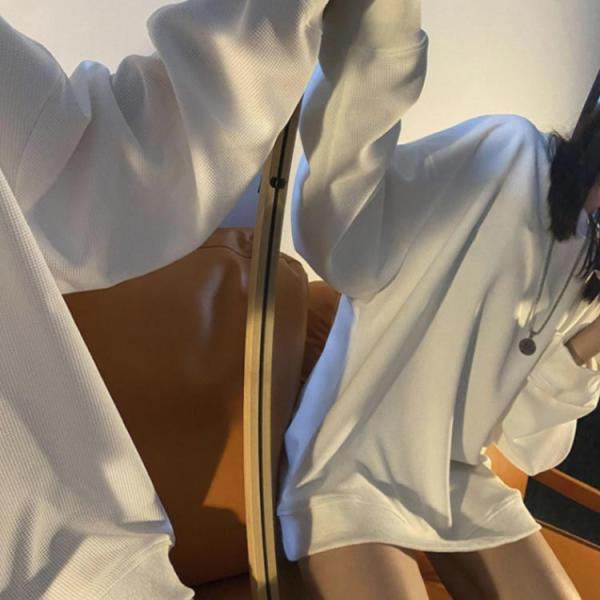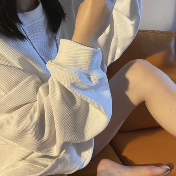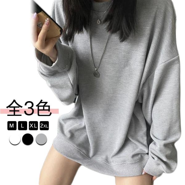トップス 秋 長袖 オーバーシルエット ワッフル 送料無料 ルーズシルエット レディース 春 大人 トレーナー プルオーバー ゆったり おしゃれ 無地