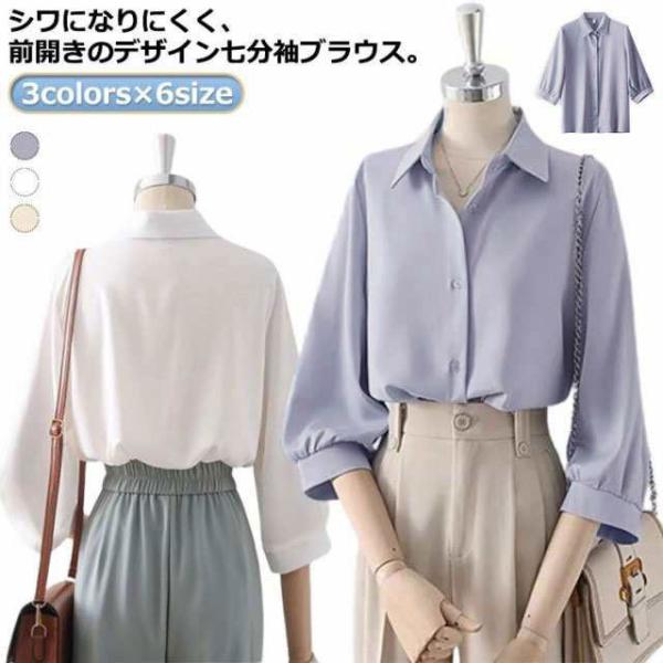 シャツ レディース 白シャツ 七分袖 通勤 シワになりにくい ブラウス 7分袖 襟付き ブラウス 大きいサイズ 衿 フロントボタン きれいめ 白ブラウ