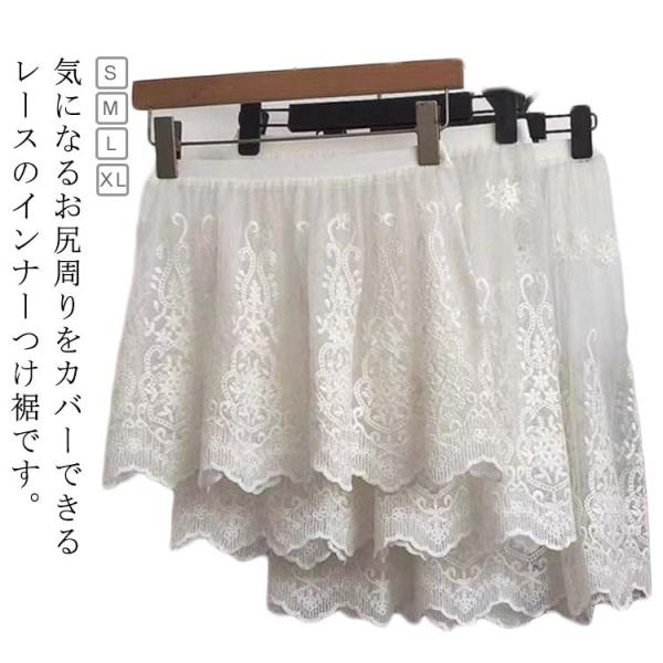 重ね着風 女性用 つけ裾 腹巻 型カバー トップス 付け裾 白 レース 花柄 レイヤード風 フェイクレイヤード お出かけ スカート風 レディース 透け