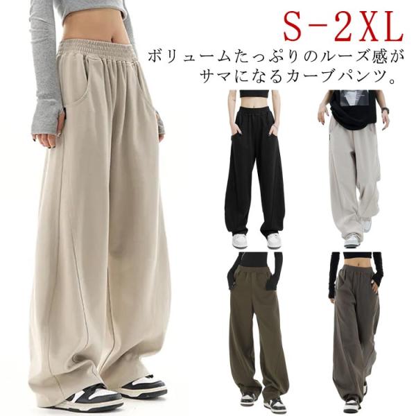 パンツ ジャージ ワイド ワイド ウエストゴム 下半身 ワイドパンツ レディース 体型カバー カーブパンツ ゆったり スエット カーブパンツ スポーツ