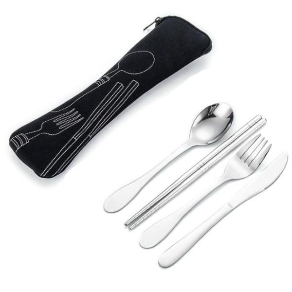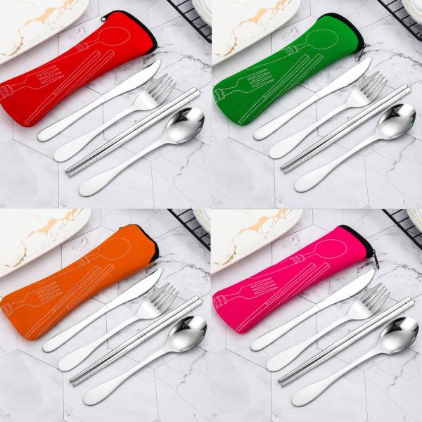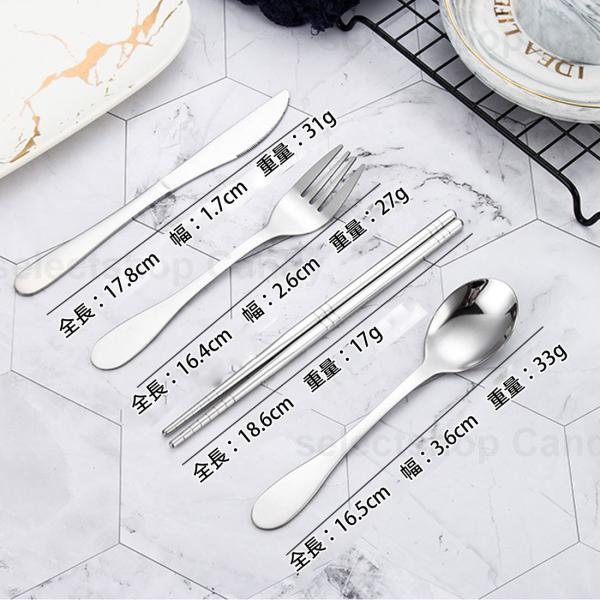 カトラリー アウトドア 食器セット 4点セット フォーク ナイフ スプーン 箸 収納袋付き 携帯 BBQ バーベキュー キャンプ ソロキャン 弁当 釣り LOD-026