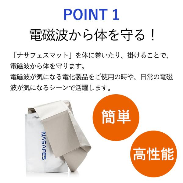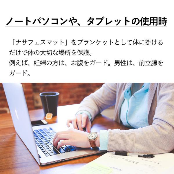 「ナサフェスマット」を体に巻いたり、掛けることで、電磁波から体を守ります。
