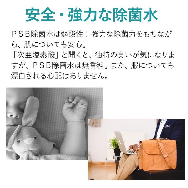 「PSB除菌水」はPhを調整した除菌水。