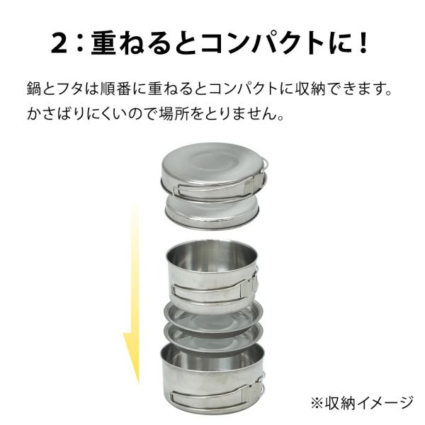 鍋とフタは順番に重ねるとコンパクトに収納できます。