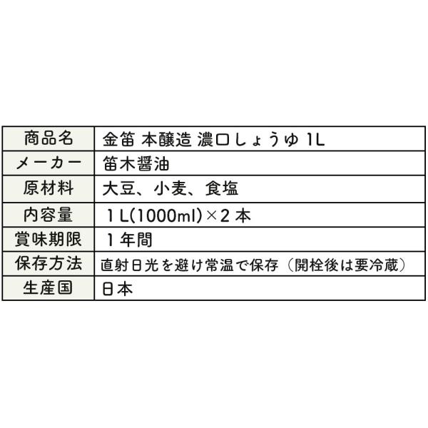 商品名:金笛 本醸造 濃口しょうゆ 1L