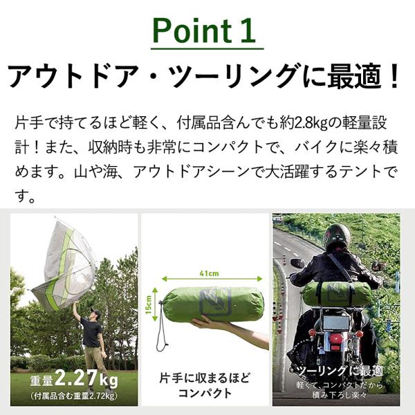ツーリングテント 2人用 グランドシート付き テント キャンプ ツーリング 防水 ワンタッチ 軽量 コンパクト 1年保証 Featherstone フェザーストーン