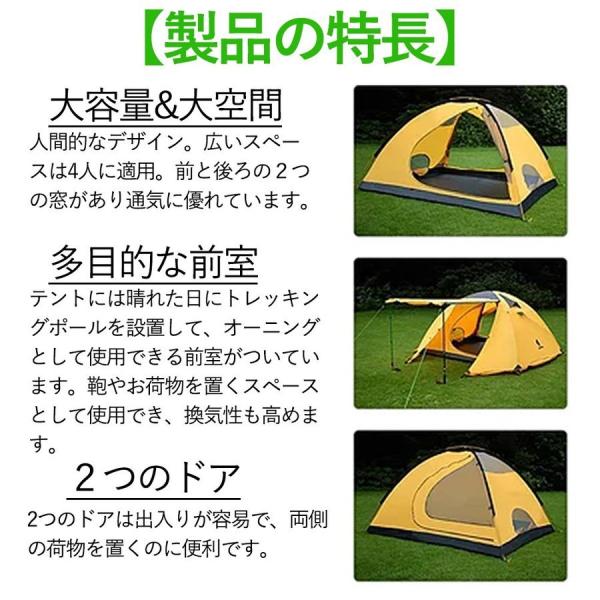 フォーシーズン テント 2〜4人用 軽量 防水 前室 大型 二重層 PU5000MM ファミリー 家族 旅行 キャンプ アウトドア 簡単 コンパクト GEERTOP ギアトップ