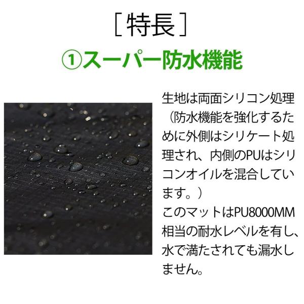 このマットはPU8000MM相当の耐水レベルを有し、水で満たされても漏水しません。