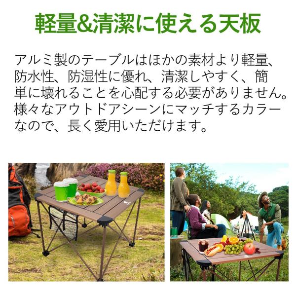 アルミ製のテーブルはほかの素材より軽量、防水性、防湿性に優れ、清潔しやすく、簡単に壊れることを心配する必要がありません。