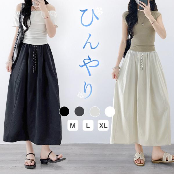 スカート レディース 夏 涼しい 接触冷感 体型カバー ロングスカート ボトムス ウエストゴム 軽量快適 春 夏 カジュアル おしゃれ ゆったり 通勤 春夏服装