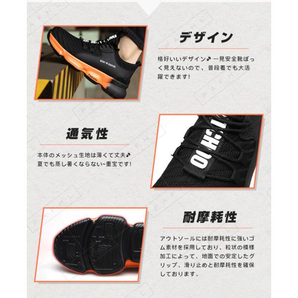 セーフティーシューズ スニーカー 安全靴 作業靴 靴 鋼先芯 つま先保護 スポーツシューズ 耐滑 軽量 通気 滑り止 男女兼用 23.0cm-28.5cm JISAレベル