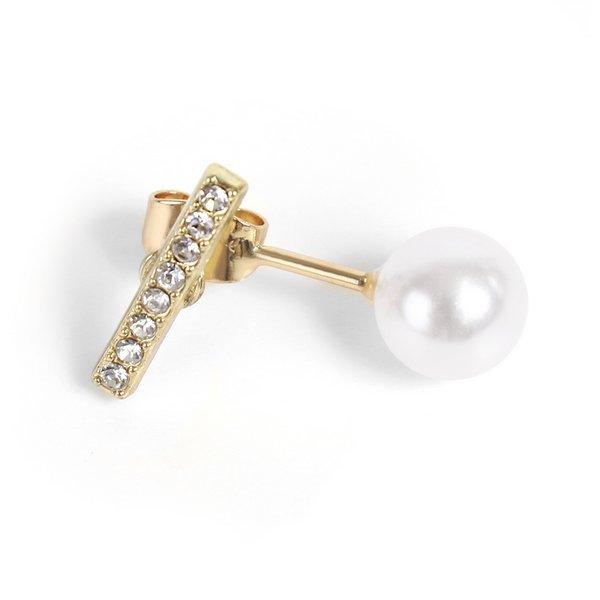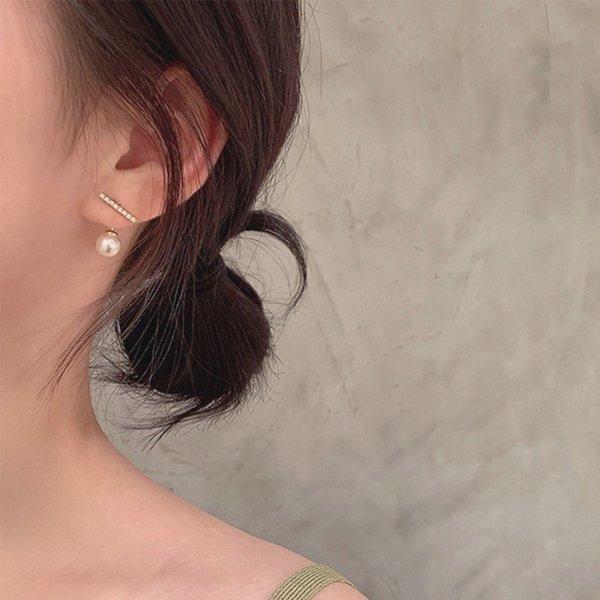 バーデザインのピアス×一粒のパールをあしらったバックキャッチ。