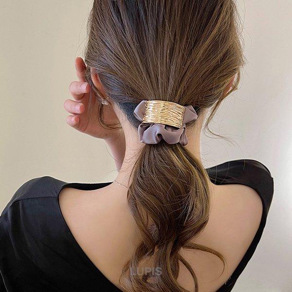 シュシュ ヘアアクセサリー ヘアゴム メタル プレート こなれ感 モード 上品 華やか おしゃれ 大人 まとめ髪 簡単 アレンジ 時短 40代 ルピス lupis