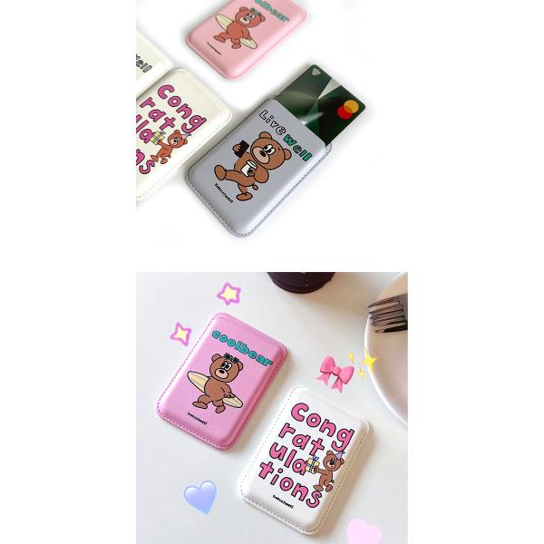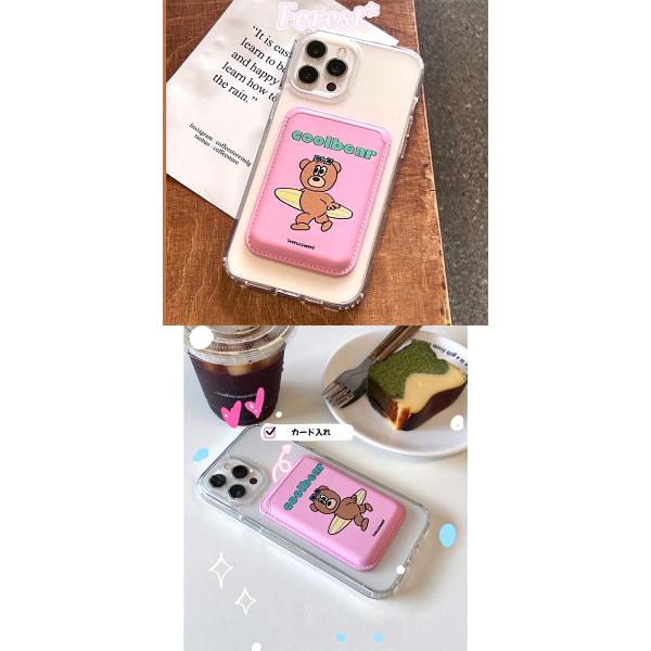 MagSafe対応 iPhone クマ カードホルダー 磁気 外付け カードケース くま 熊 韓国 キャラクター アイフォン マグセーフ スマホ カード入れ クレカ Suica 定期券