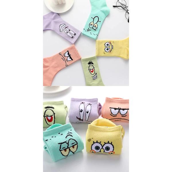 スポンジボブ ソックス 5足セット コットン くつ下 靴下 Spongebob アニメ キャラクター グラフィック デザイン カジュアル ギフト 小物