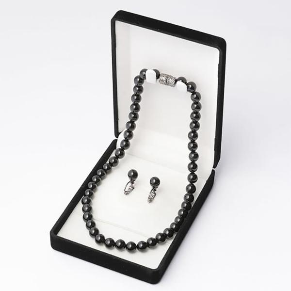 フォーマルシーンには欠かせない、オニキスのネックレス・イヤリングです。