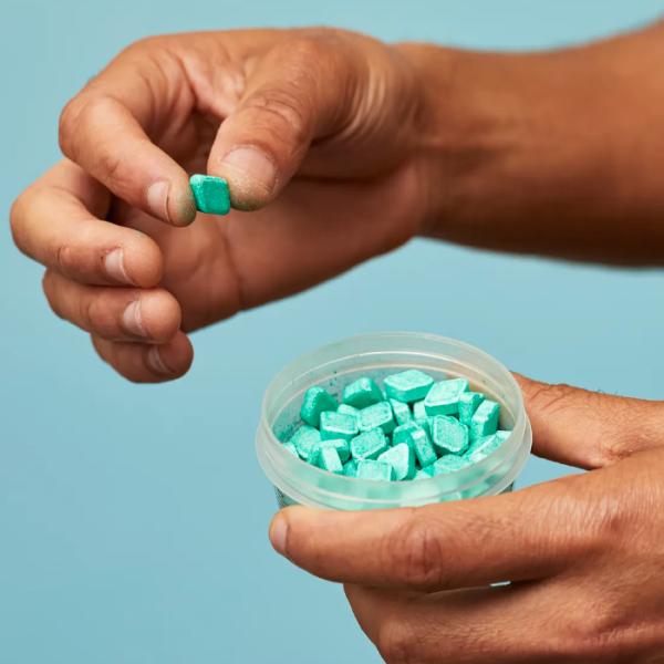 歯磨きの後に、水と一緒にマウスウォッシュタブレットを一粒口に含み、噛み砕いてください。粒が溶けたら口をすすいで吐き出します。使用の際は飲み込まないようにご注意ください。
