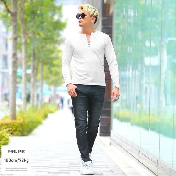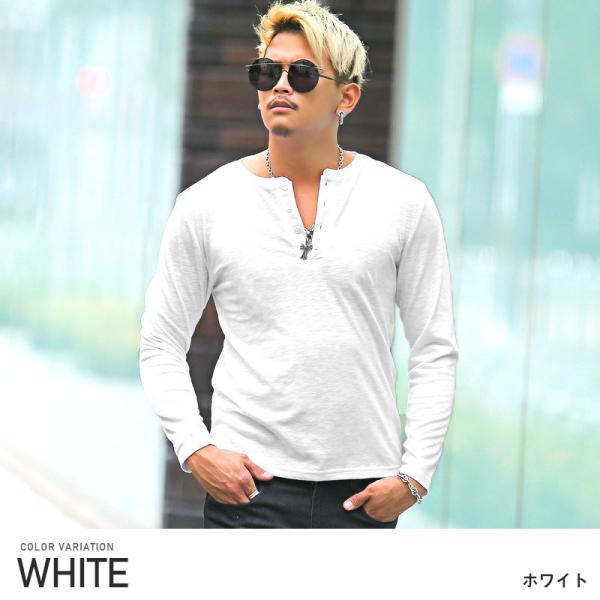 ロンT メンズ 長袖Tシャツ ヘンリーネック スラブ 天竺 無地 シンプル インナー 長袖 ビター系
