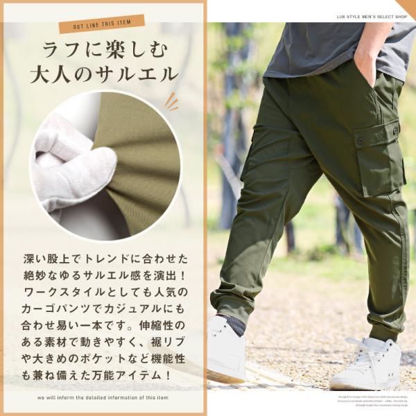 カーゴパンツ メンズ サルエル ミリタリー ワークパンツ サイドポケット 無地 細身 ビター系