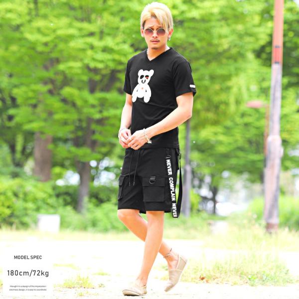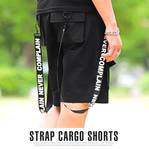 セール ショートパンツ メンズ ボトムス 膝上 ストレッチ ロゴ ストラップ カーゴパンツ ビター系