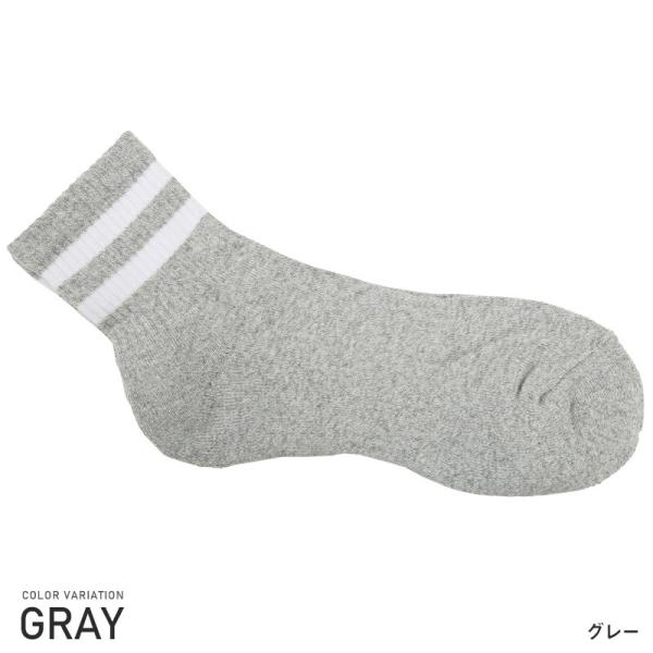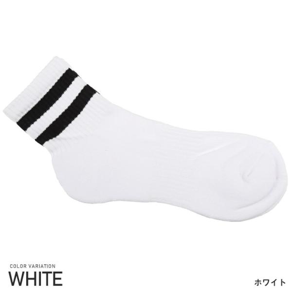 ロークルーソックス丈を採用し、幅広のリブ部分に2本ラインを落とし込んだスクールテイストな一足。