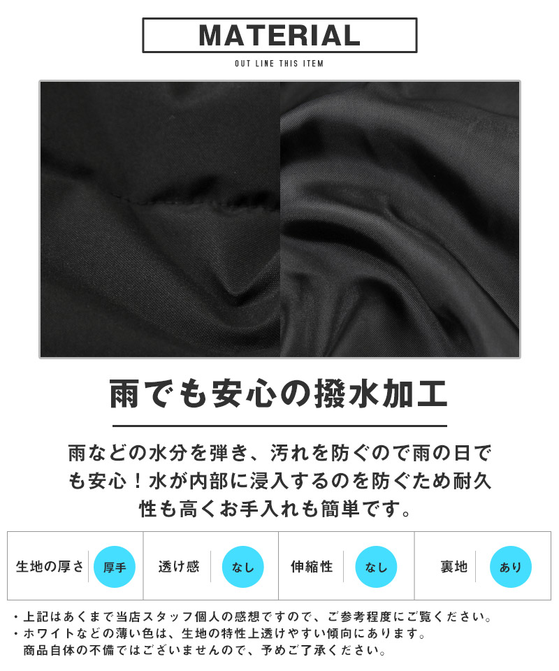 撥水&防風加工が施されているので雨風に強く、キャンプや登山などのアウトドアにもおススメです。