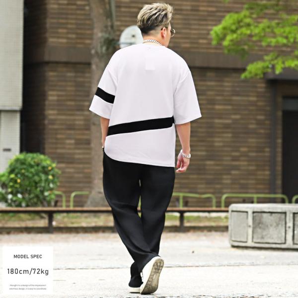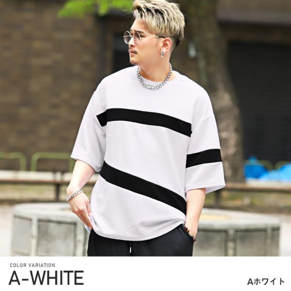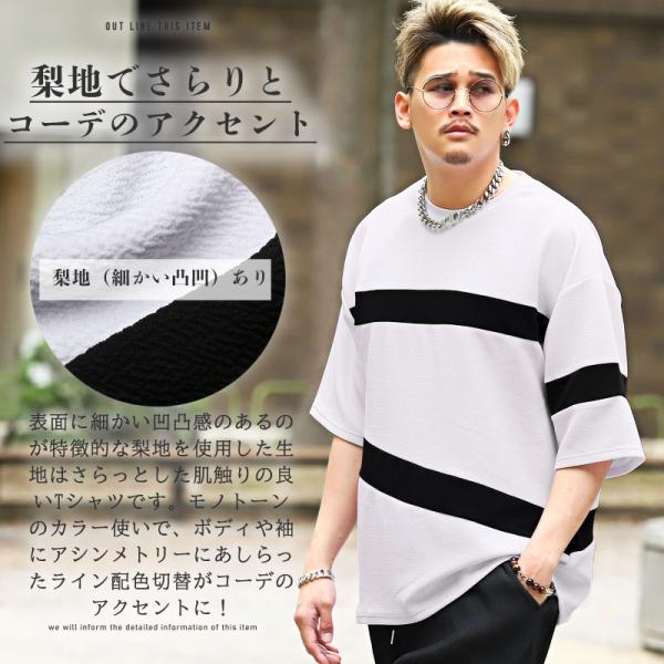 Tシャツ メンズ 半袖 5分袖 ビッグシルエット 梨地 ライン ボーダー ストリート