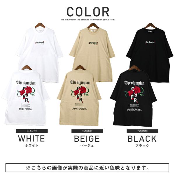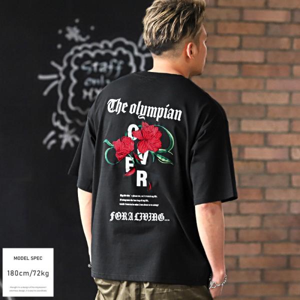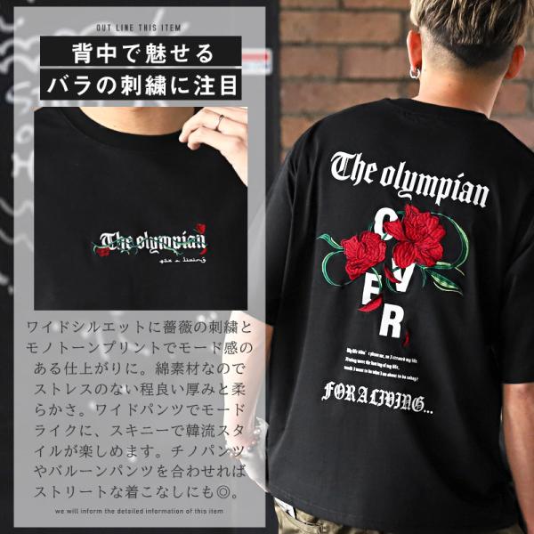 Tシャツ メンズ 半袖 ビッグシルエット バラ 薔薇 刺繍 ロゴ イラスト ストリート