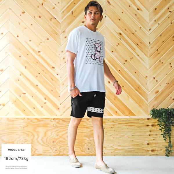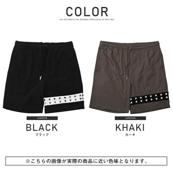 ショートパンツ メンズ ナイロン風 星 ライン ショート丈 イージー 膝上 ビター系