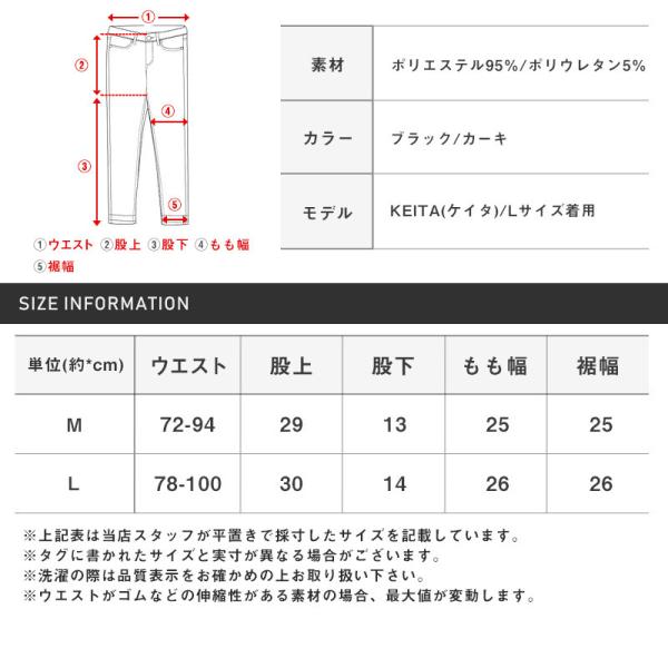 ウエスト約78-100cm/股上約30cm/股下約14cm/もも幅約26cm/裾幅約26cm