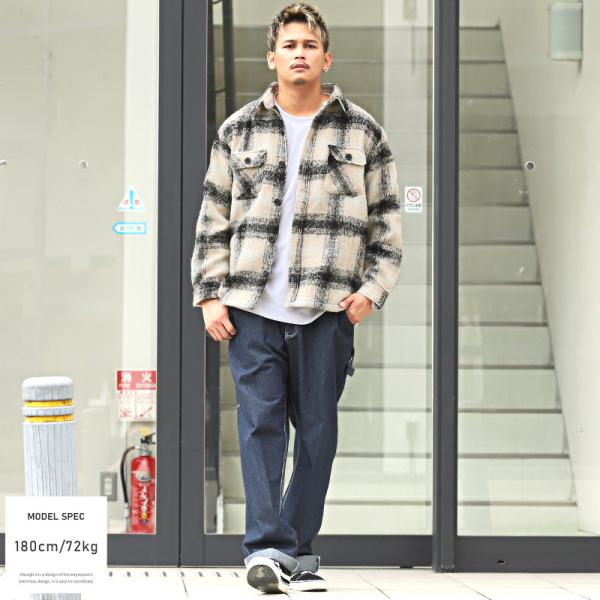 シャツジャケット メンズ チェック柄 総柄 起毛 ポケット カジュアル