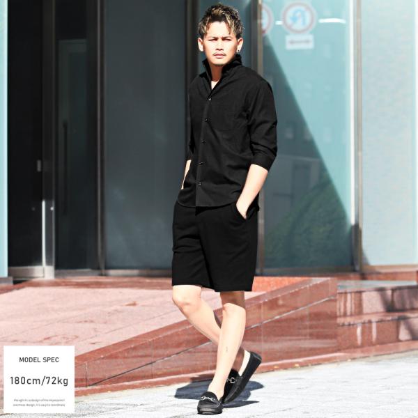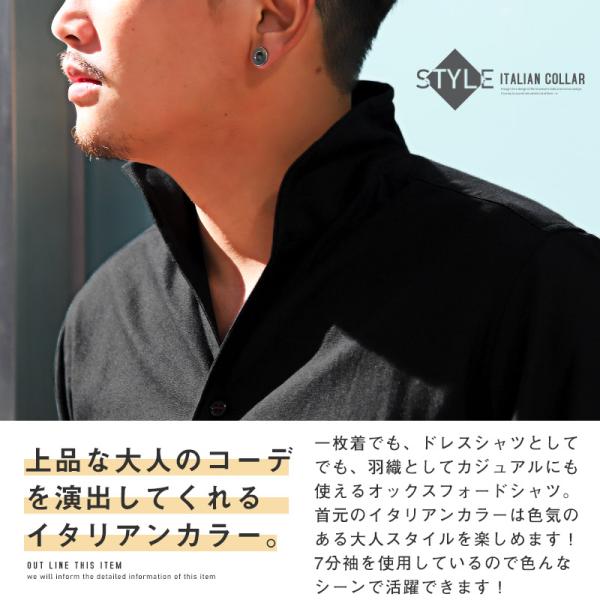 イタリアンカラーシャツ メンズ 7分袖シャツ オックスフォード 無地 大人 ビター系