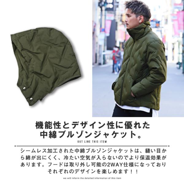 ブルゾン メンズ ジャケット 中綿 フード 取り外し 2WAY 暖か 防寒