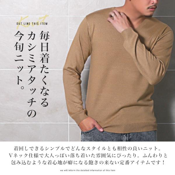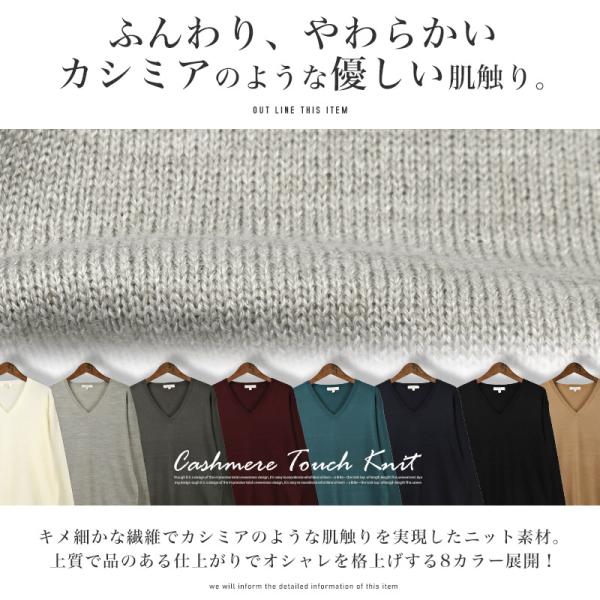 ニット メンズ セーター Vネック カシミヤタッチ 柔らか 無地 ハイゲージ 薄手 春秋