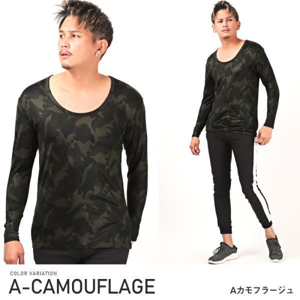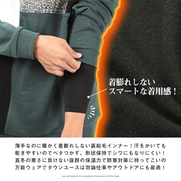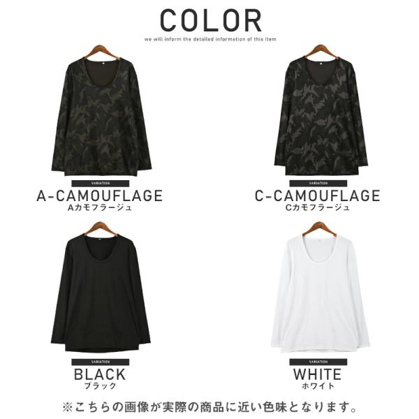 インナー メンズ 長袖 ロンT 裏起毛 Uネック 保温 速乾 暖か 防寒 無地 カモフラ
