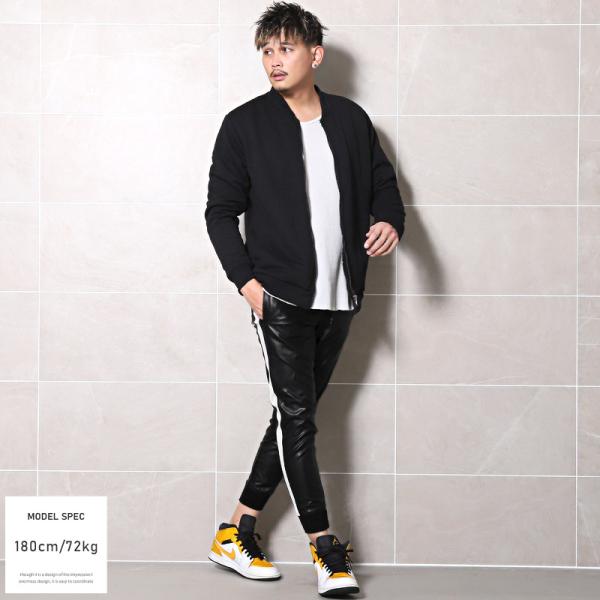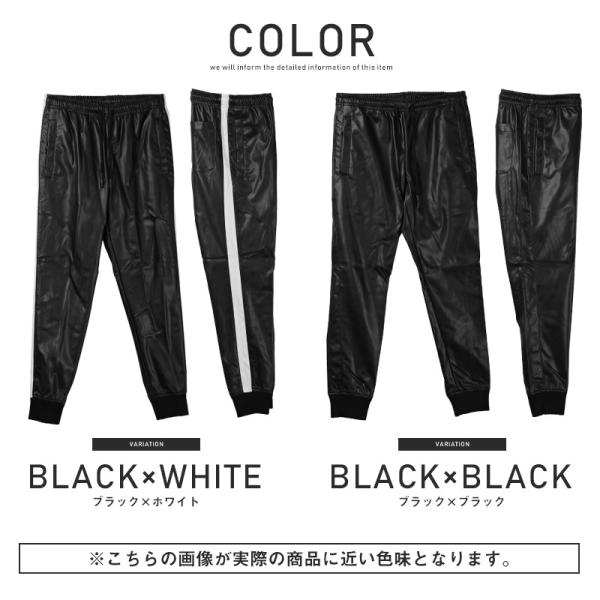 ジョガーパンツ メンズ PUレザー サイドライン リブパンツ イージー 合皮 ビター系