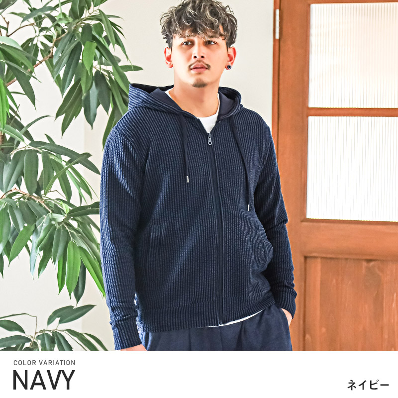 春夏の定番、季節感溢れるシアサッカー素材を採用したZIPパーカー。