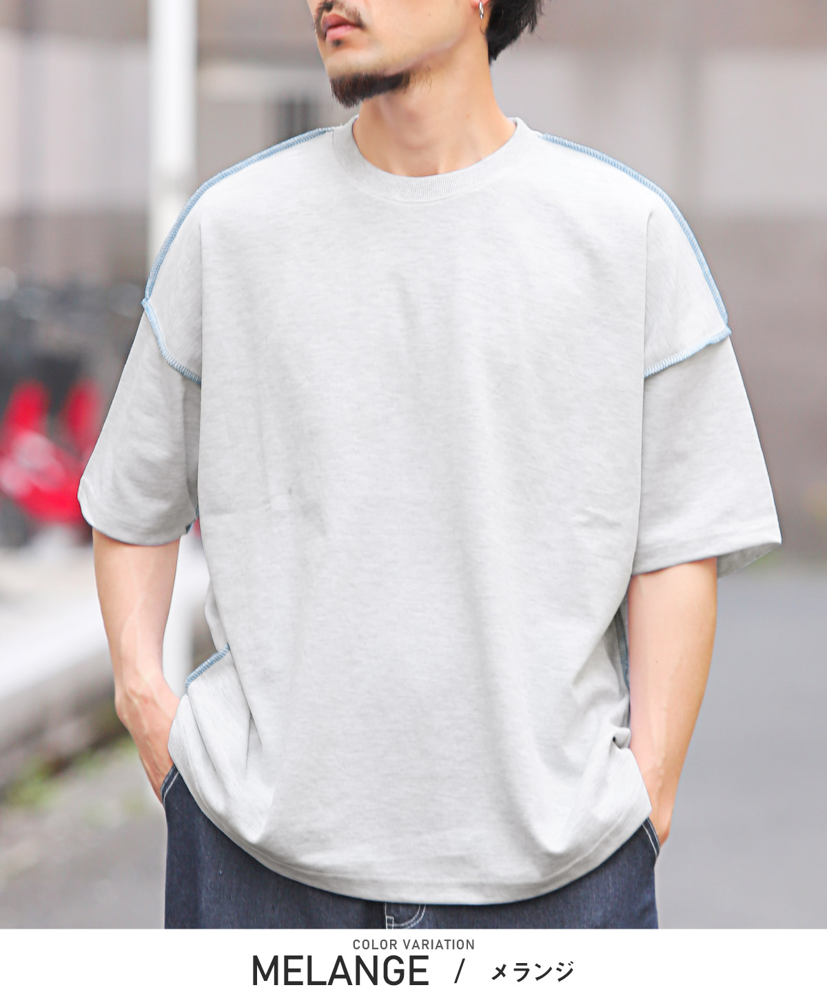 Tシャツ 半袖 メンズ ビッグシルエット ステッチ 無地 ドロップショルダー カットソー シンプル