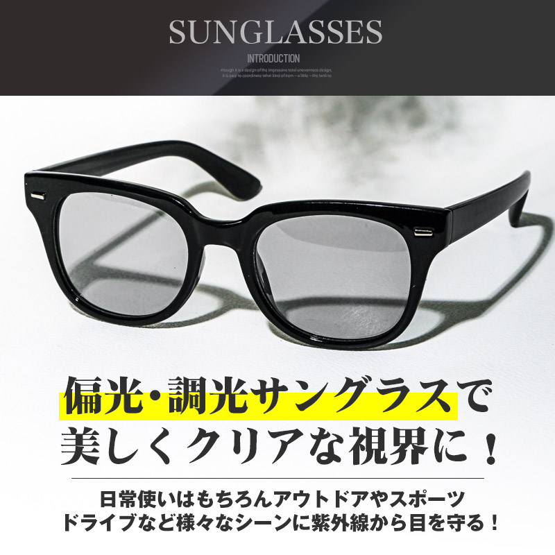 『偏光調光機能付きUVカットウェリントンサングラス』