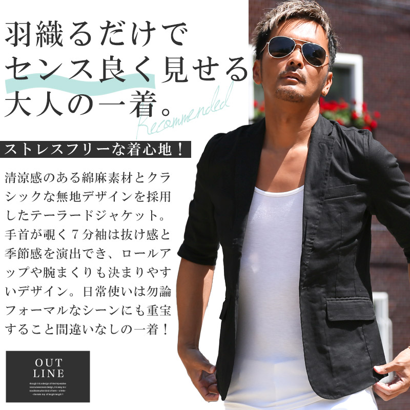 テーラードジャケット サマージャケット ジャケット メンズ ミドル 綿麻 リネン 7分袖 七分袖 ストレッチ M L XL aa-3574