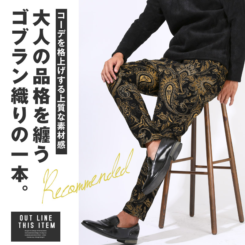 高級感漂うゴブラン織り生地を贅沢に使用したペイズリー柄イージーパンツ。