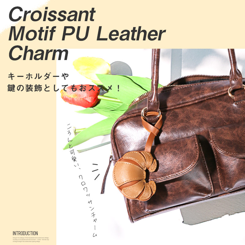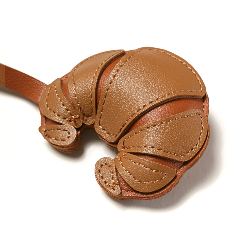 立体感のあるクロワッサンモチーフが目を惹く、遊び心たっぷりのPUレザーチャーム。