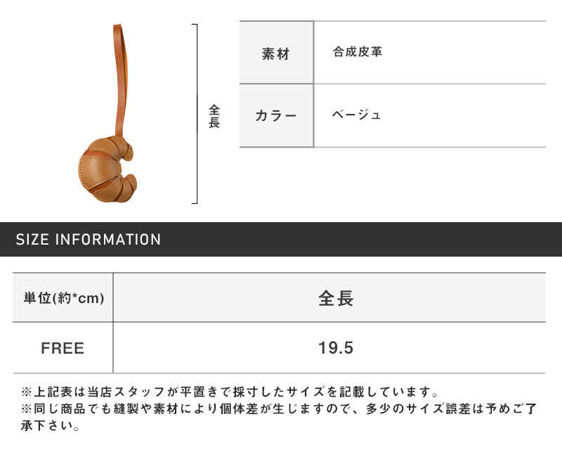 『PUレザークロワッサンチャーム パンモチーフ クロワッサン 合皮 バッグチャーム』