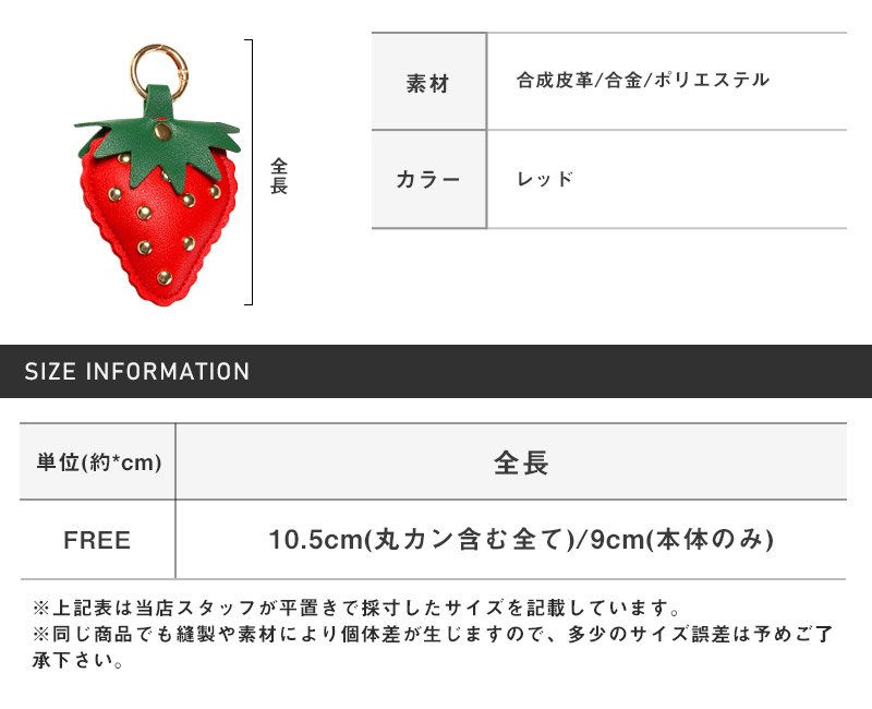 『PUレザーストロベリーチャーム いちご 苺 フルーツモチーフ 合皮 バッグチャーム』